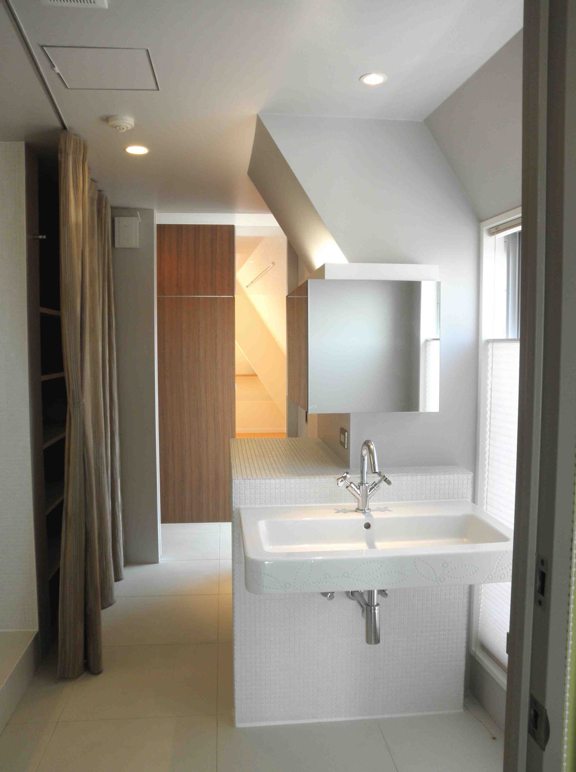 - 洗面所は寝室への通路となっており、外の景色をみて洗顔できる。